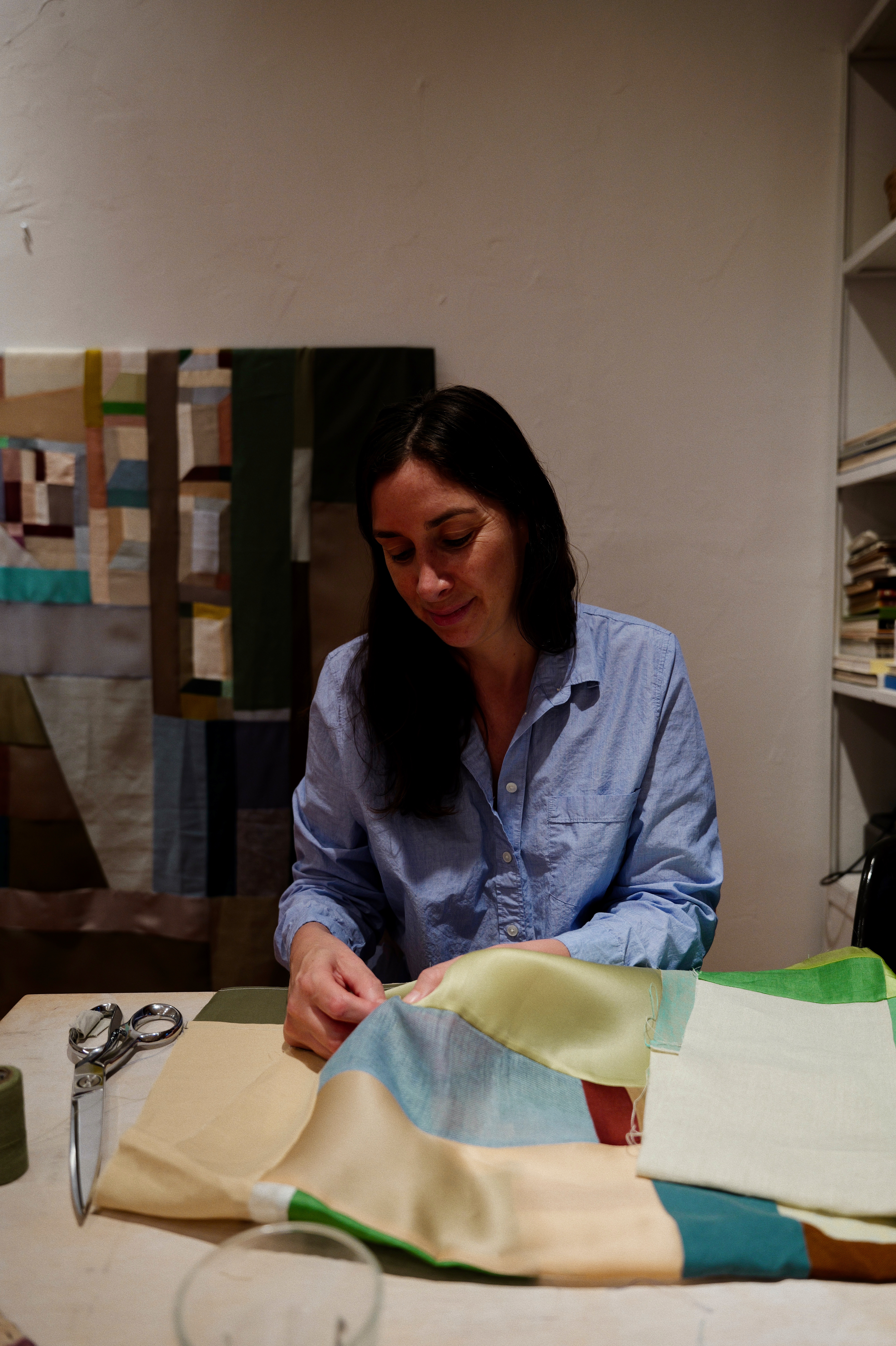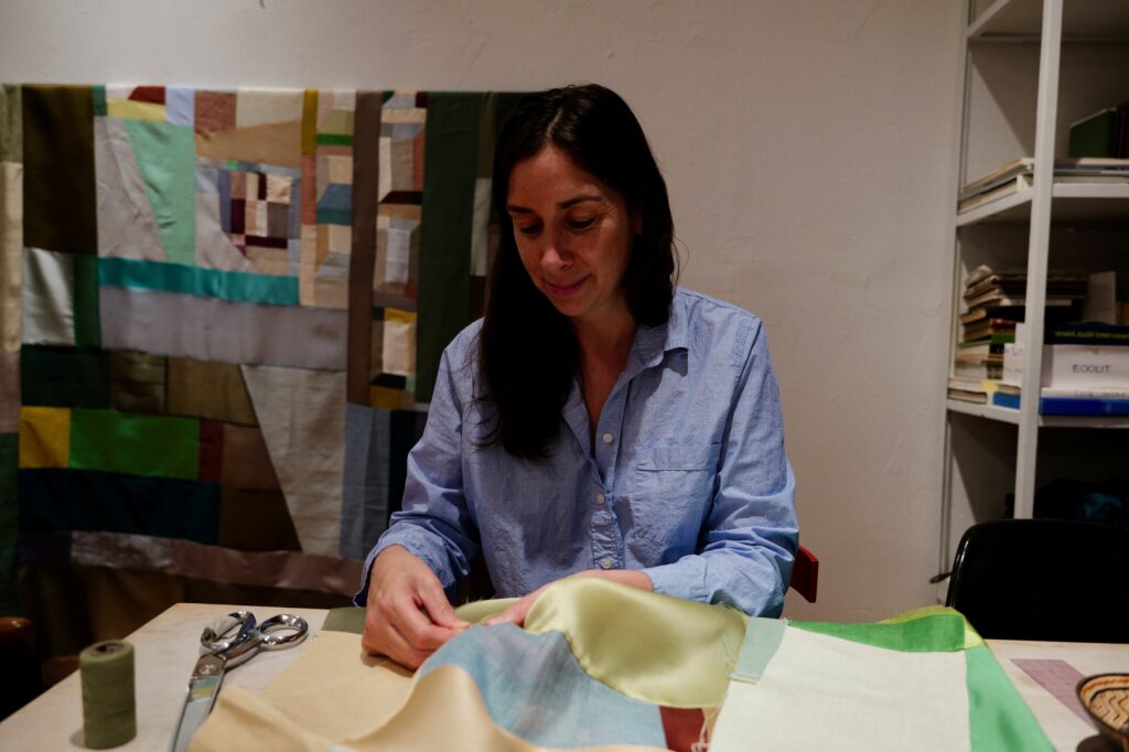 Collaboration is an integral part of Kiva’s practice. Her work with artists like Susan Cianciolo has proven to be transformative, opening her eyes to new perspectives and ideas. “Collaboration is at the core of patchwork and quilt-making, and it brings a fresh perspective to my own work,” Kiva muses. The process of working alongside other creatives has not only deepened her understanding of her craft but has also enriched her artistic vision.